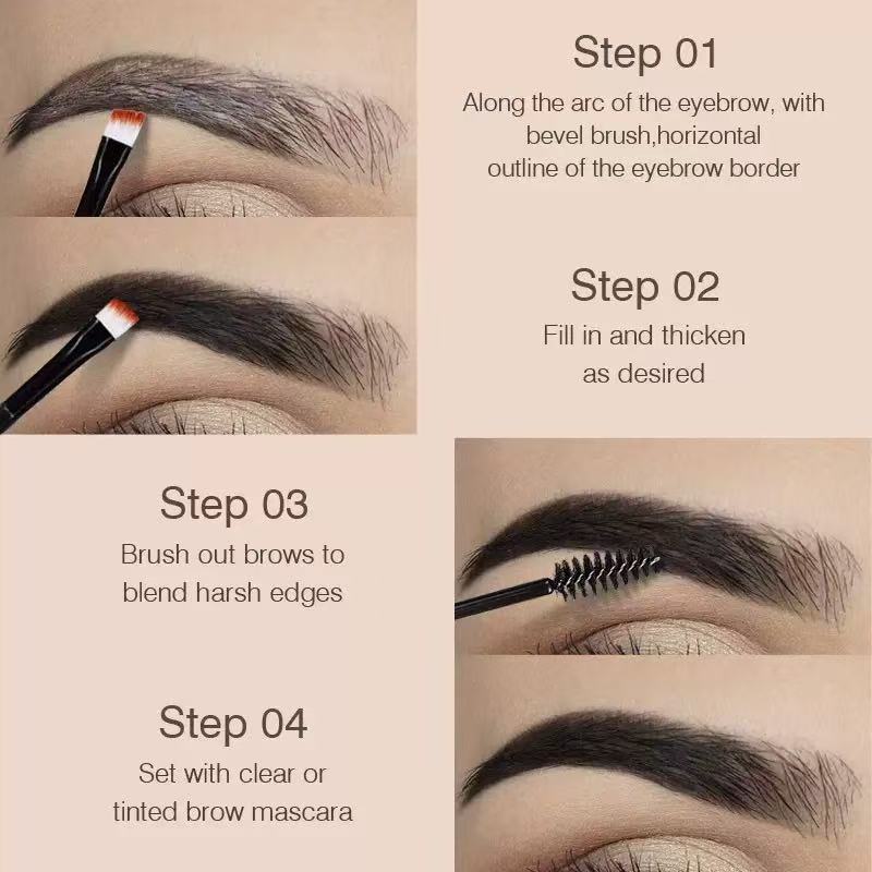 • 🖌️ 2-in-1 Brush for Precision:Dual-ended brush features a spoolie for blending and an angled tip for detailed shaping, making it easy to achieve fluffy brows, soft powder brows, and more—even for beginners.