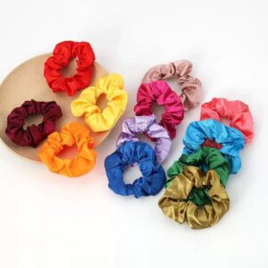 A burst of 12 bold, eye-catching colors to match every mood and outfit—these satin scrunchies blend playful style with everyday functionality.