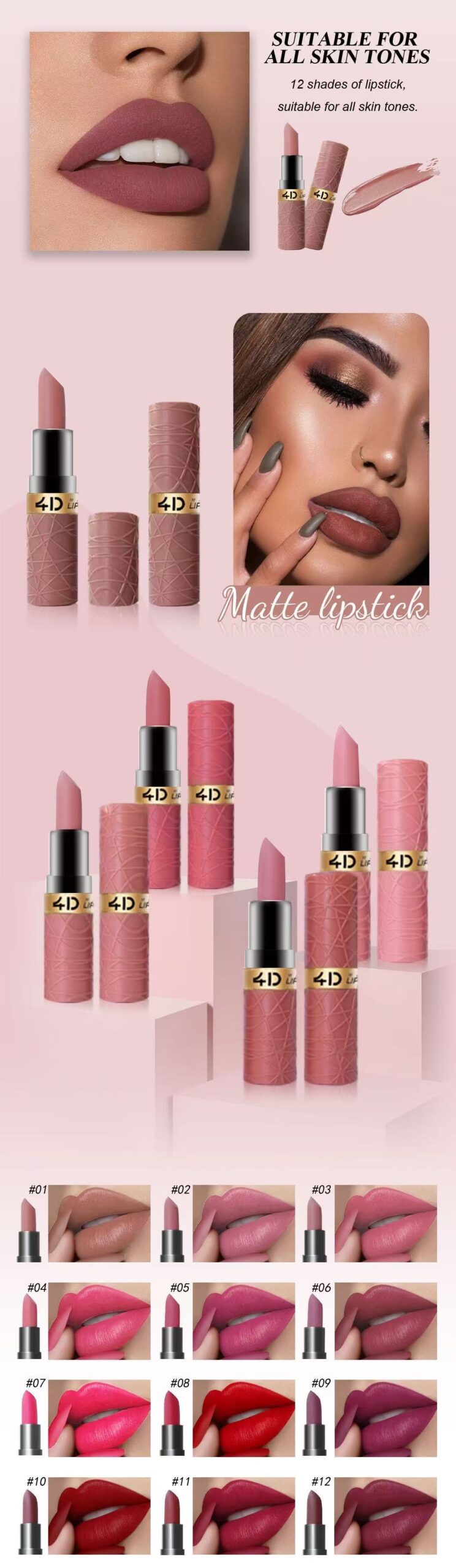 The set includes two distinct shade groups: Collection A features soft nudes and elegant dusty roses for everyday wear, while Collection B offers bold red-browns and vintage berries for statement-making looks. One set unlocks endless style possibilities.