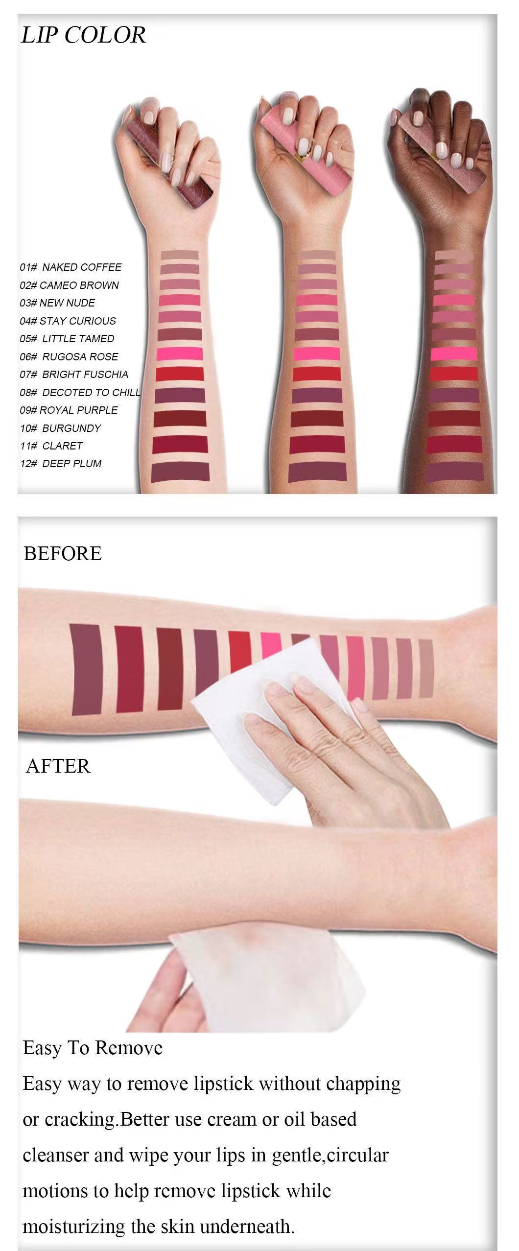 The velvety matte formula glides on smoothly, delivering full coverage that hides lip lines. It stays transfer-resistant and fade-proof for hours, maintaining a flawless matte finish all day long.
