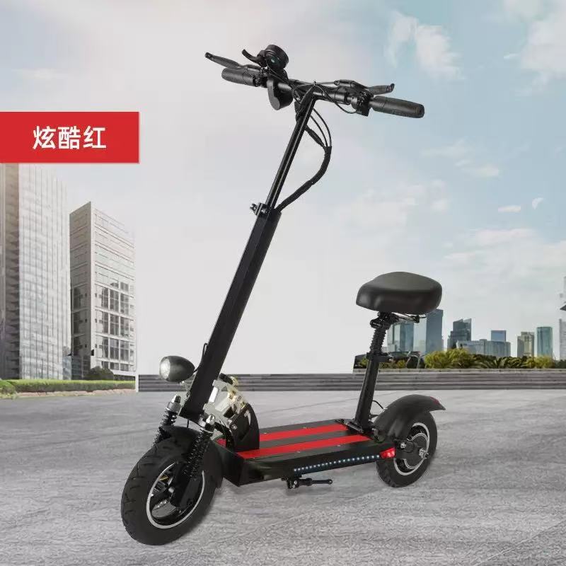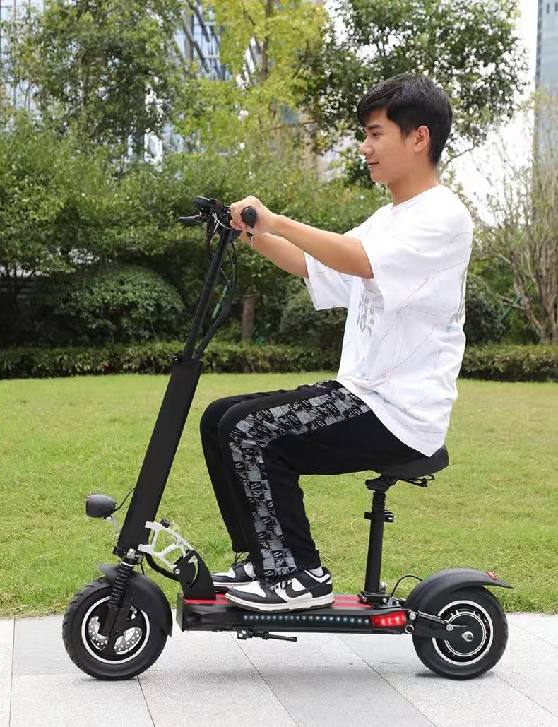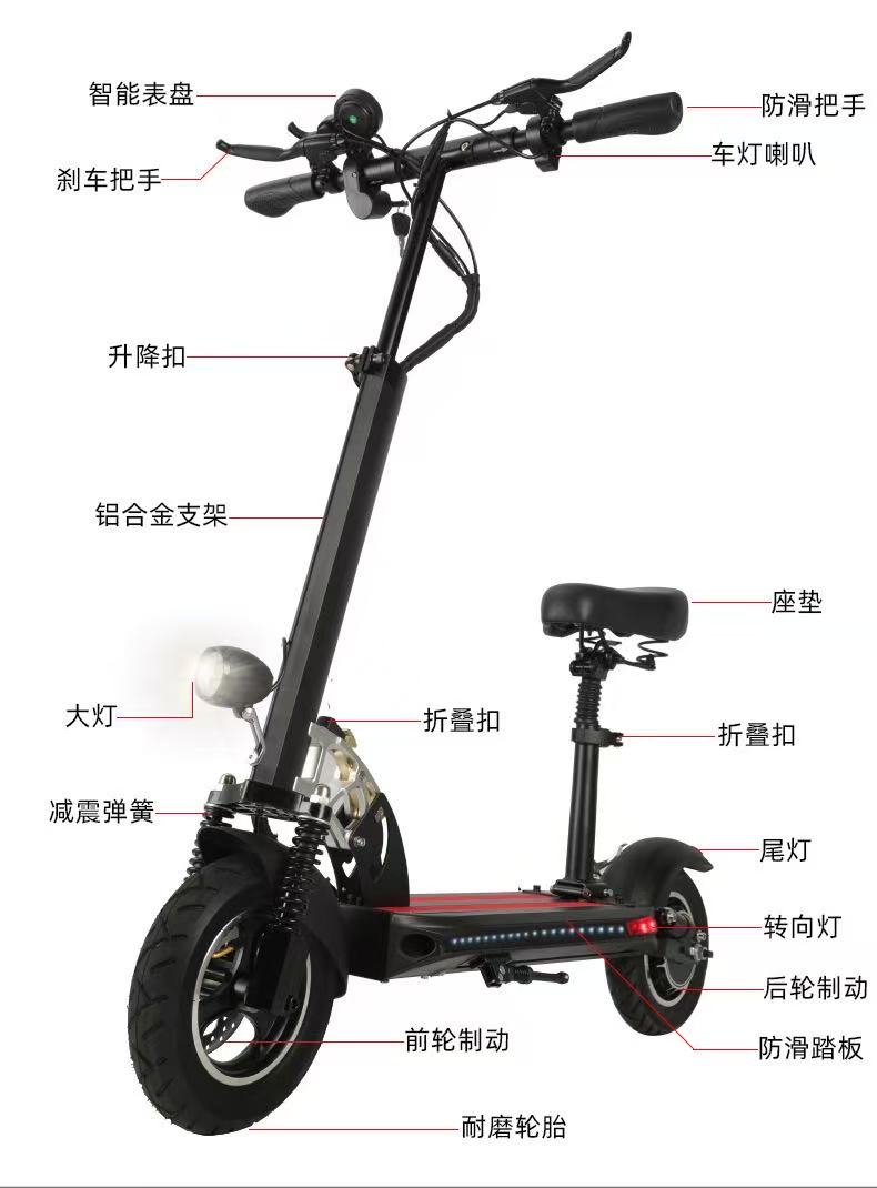 Large, wear-resistant tires paired with shock-absorbing springs effectively cushion bumps, ensuring a smooth ride on asphalt, stone pavements, and more.