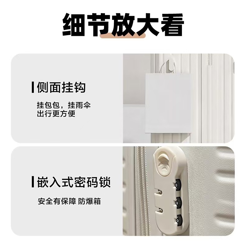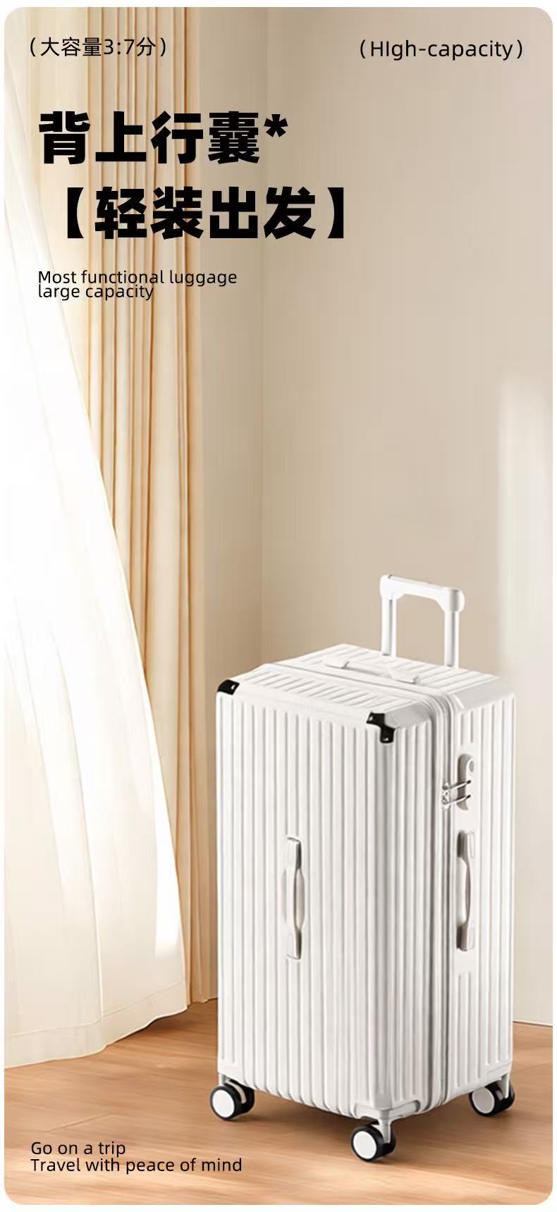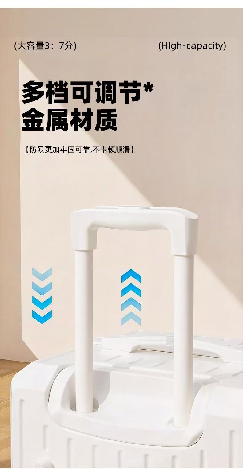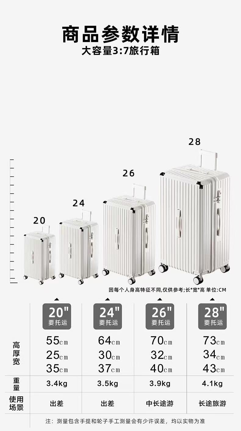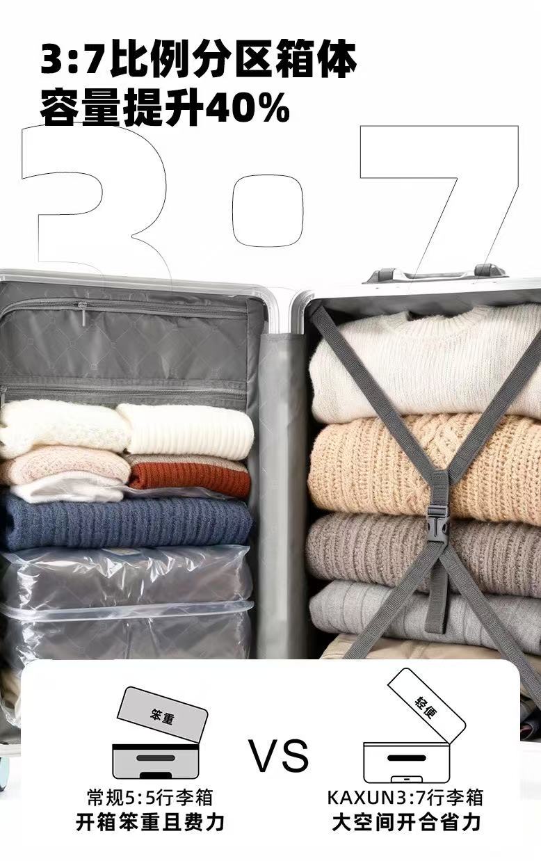 3:7 split compartment design offers 20% more space than standard suitcases, perfect for seasonal clothes, travel gear and souvenirs.