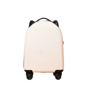 Rounded edges and “ear” handles for safe gripping, silent 360° spinner wheels for easy rolling, 18″ carry-on size perfect for trips and school stays.