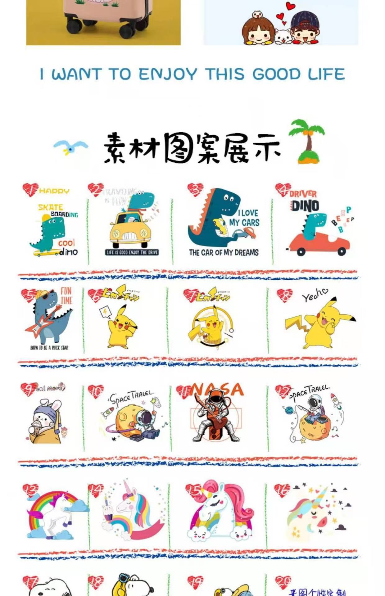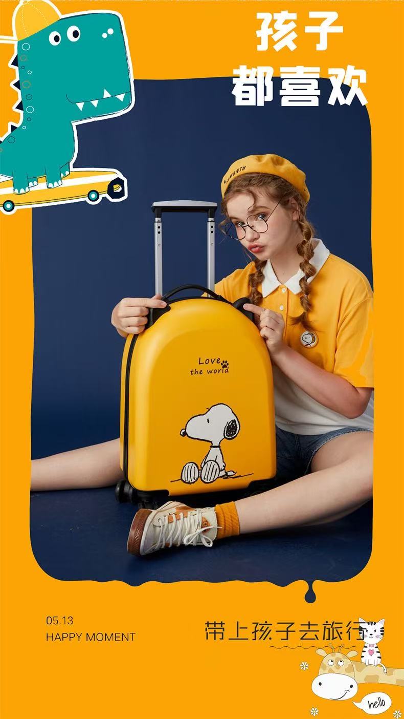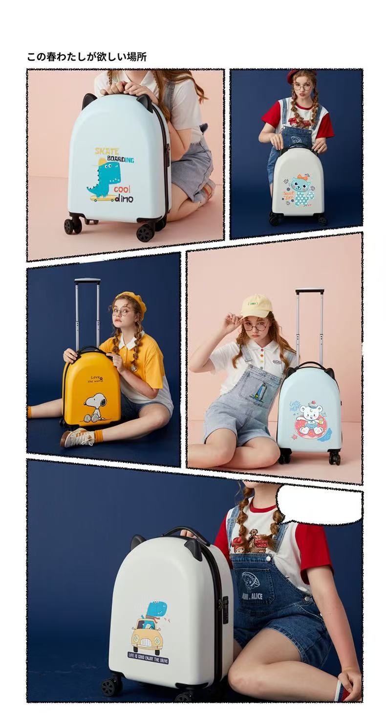 Fun prints of dinosaurs, Snoopy and teddy bears, paired with soft colors like milk white, light blue and sunny yellow. Also supports custom designs with your child’s name or favorite cartoon characters for a one-of-a-kind suitcase.