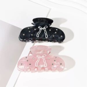 🌟 Bow & Imitation Diamond Acetate Claw Clip