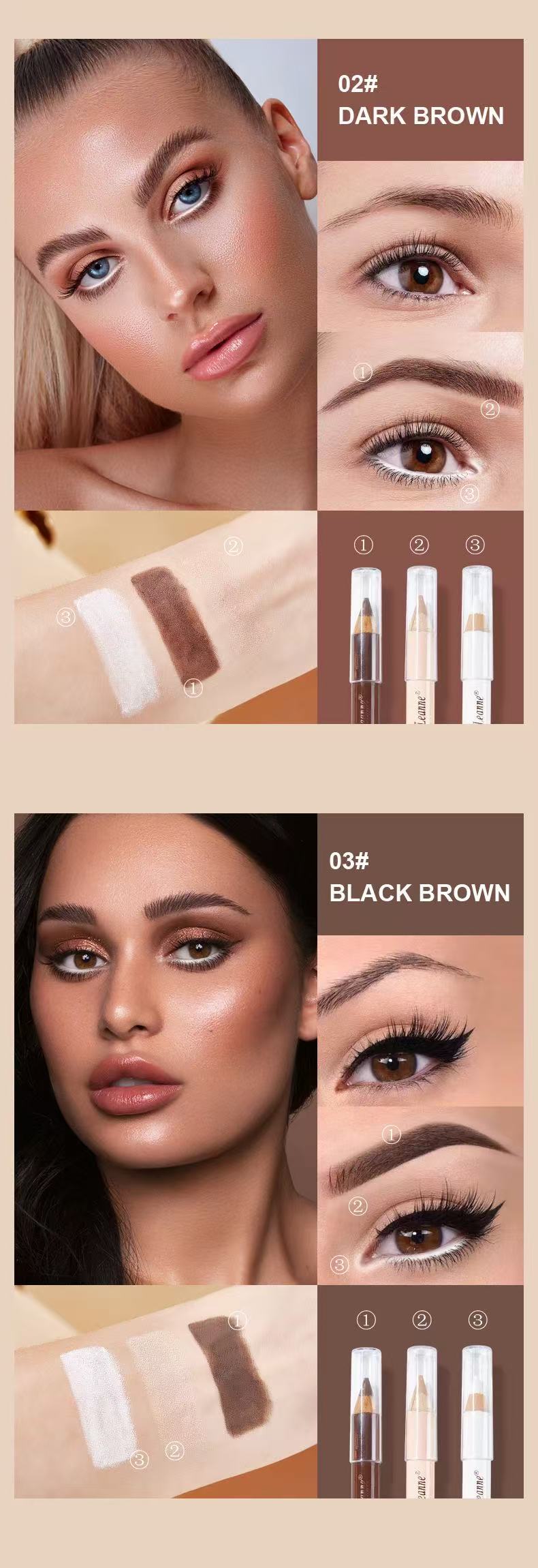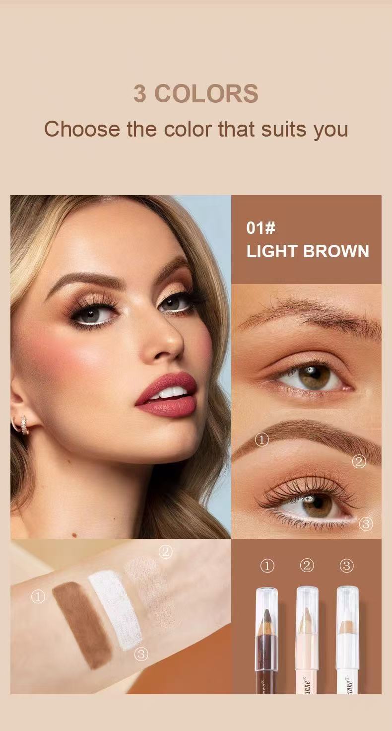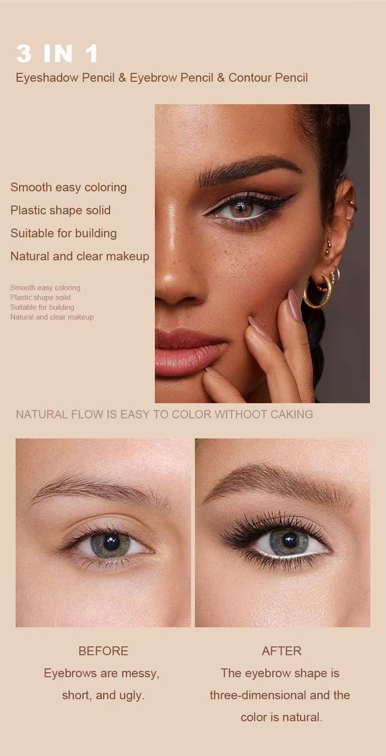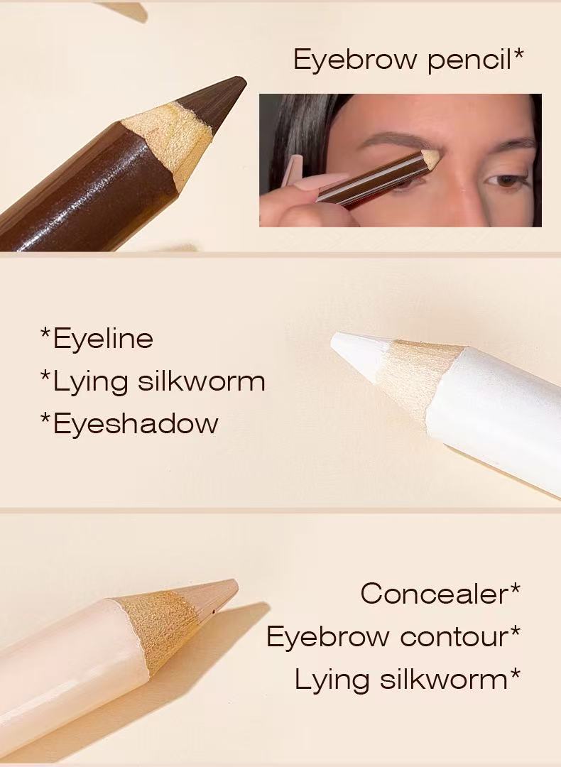 Each pencil measures just 13cm×3.8cm×1cm, compact and portable for on-the-go touch-ups. An all-in-one solution for brows, eyeshadow, contour, and concealer. The long-lasting waterproof formula stays smudge-proof all day, creating a natural, 立体 look. The slim tip allows precise application, making it easy for beginners to define and enhance your eye makeup effortlessly!