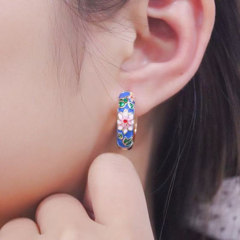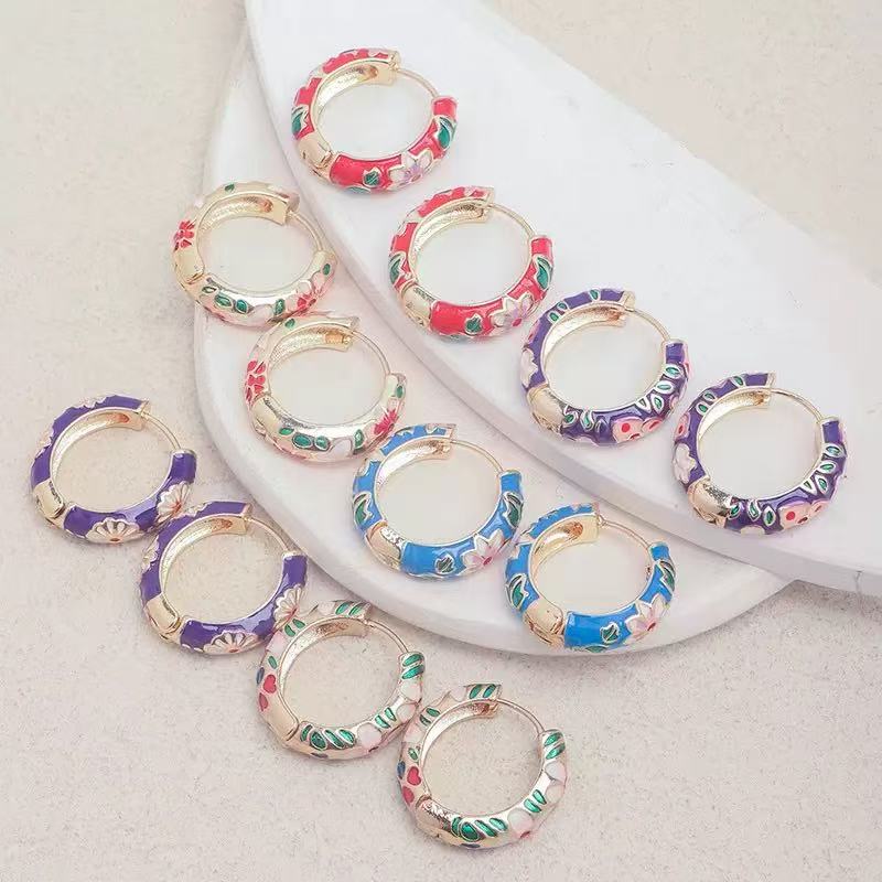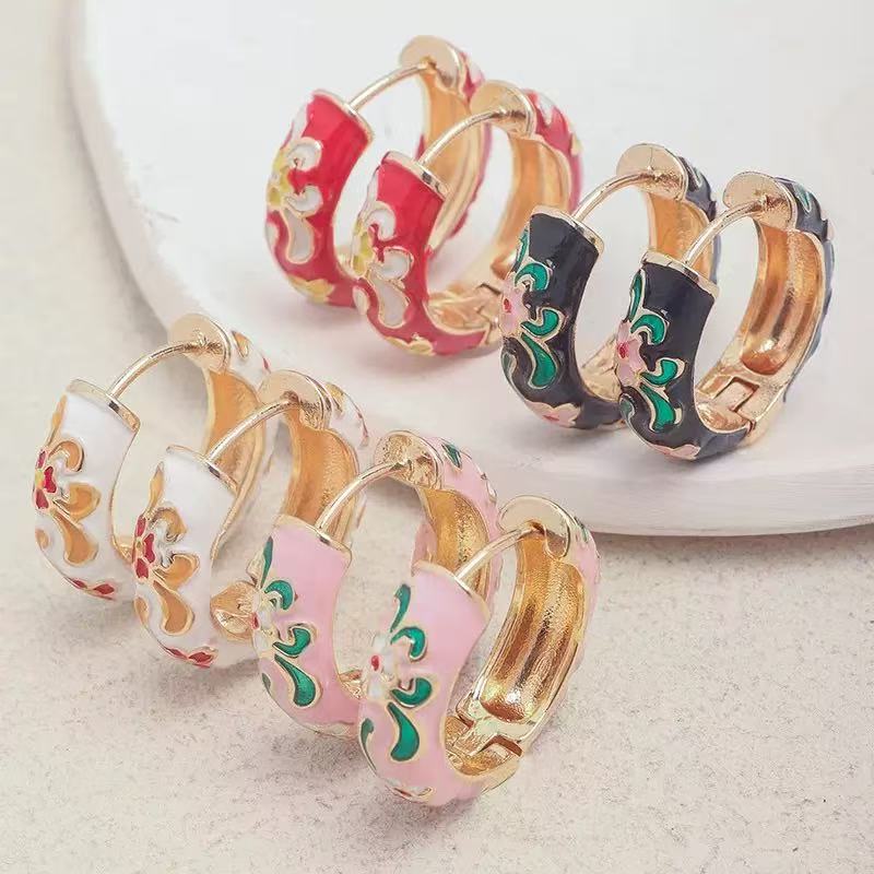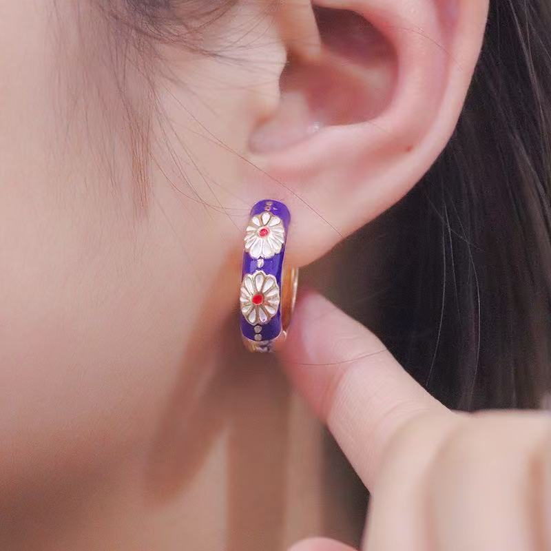 Be the first to review “Vintage Enamel Floral Hoop Earrings”